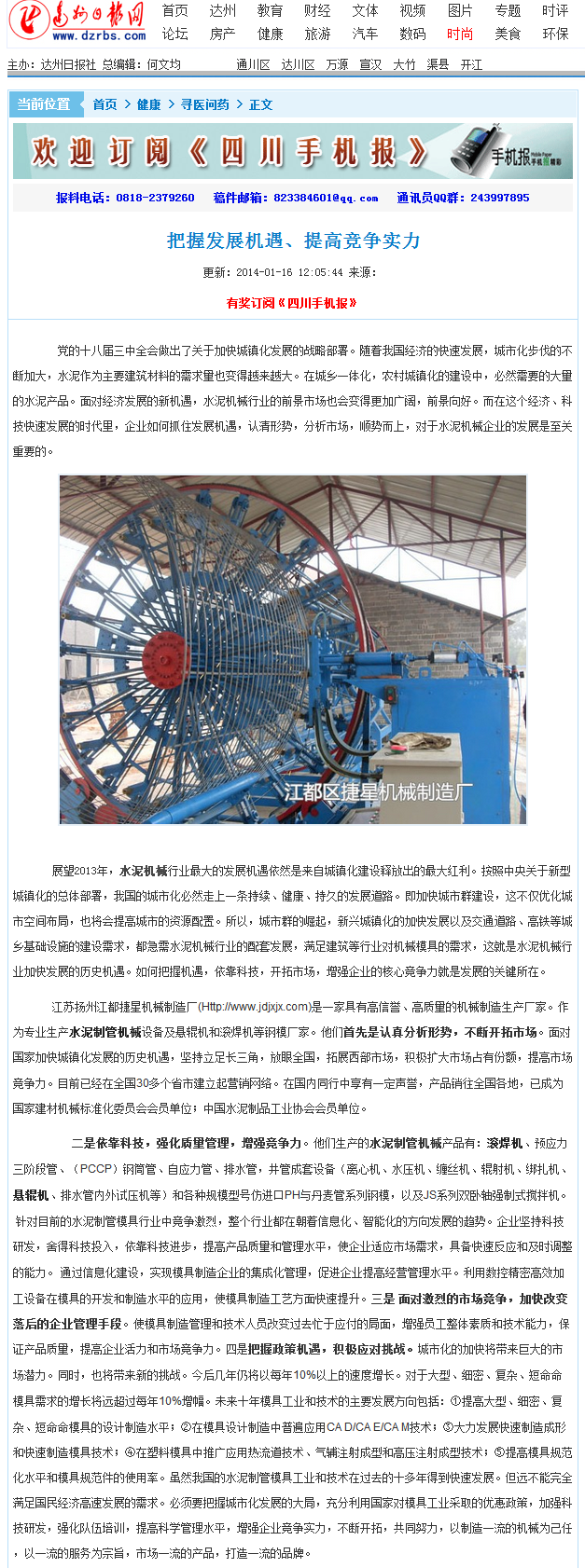 地方政府門戶網(wǎng)達州日報社日報網(wǎng)對芯模振動模具江都捷星機械專題報道,