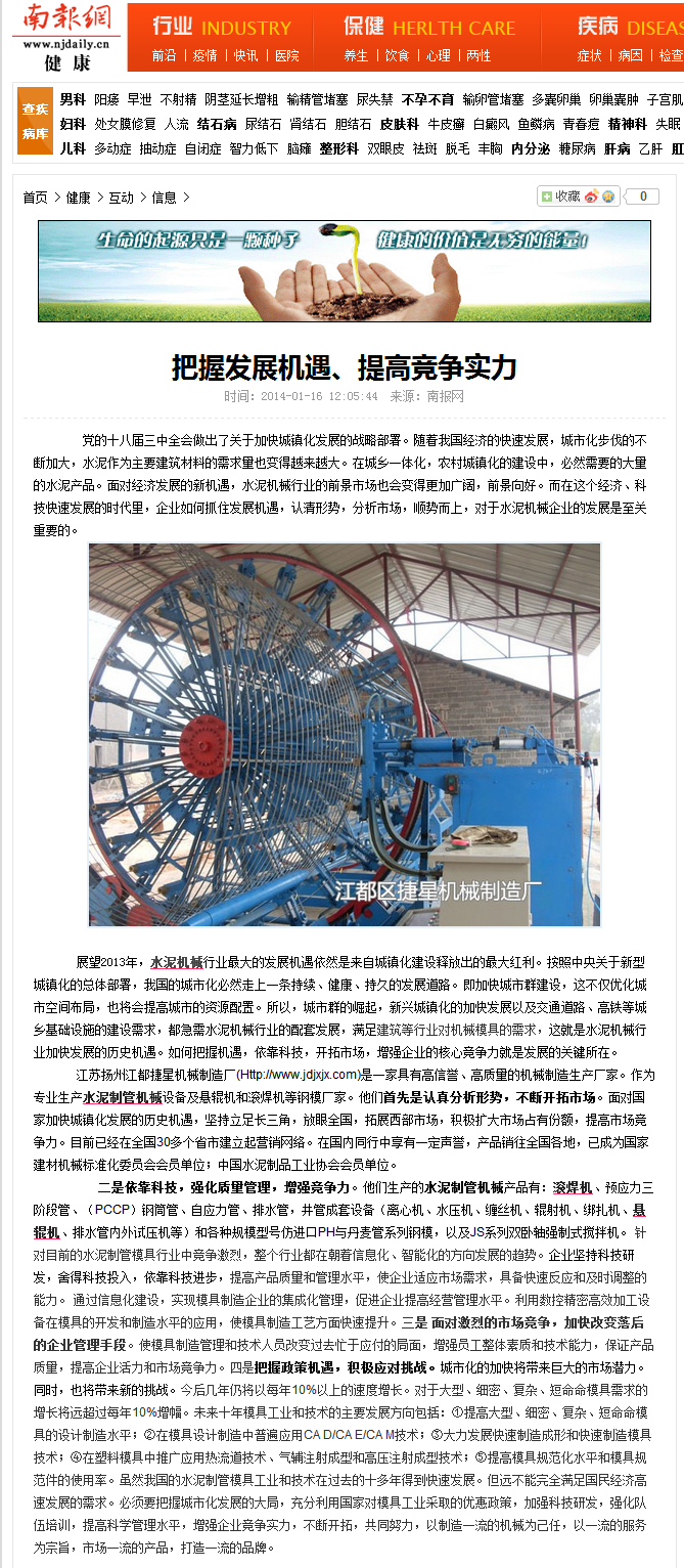 南京日?qǐng)?bào)網(wǎng)對(duì)芯模振動(dòng)模具廠家捷星機(jī)械的報(bào)道