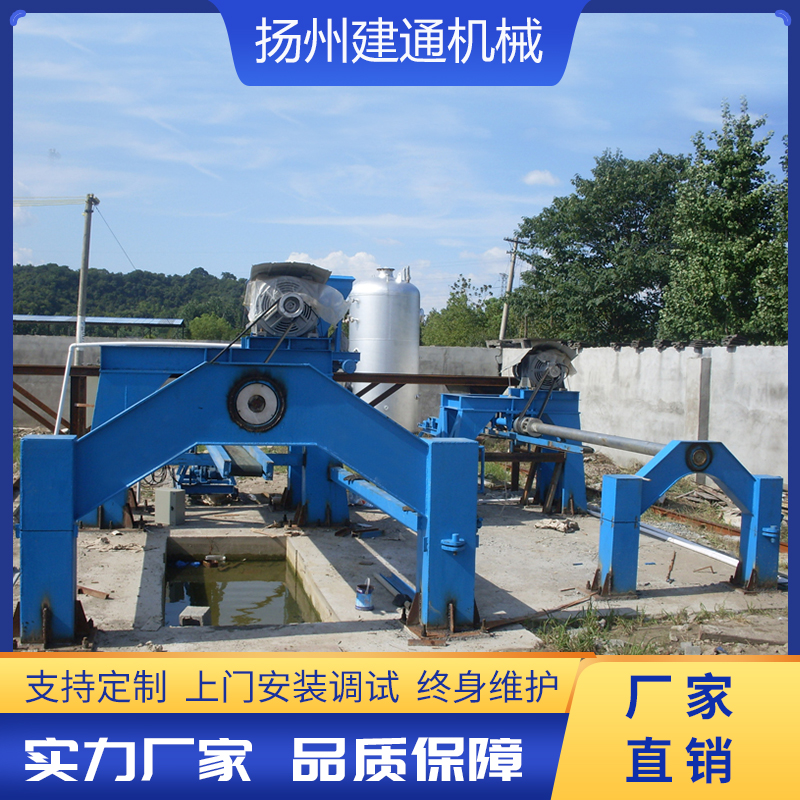 懸輥機整體是由支架、工作軸、門通過基礎(chǔ)組合在一起,所以,安裝調(diào)試是關(guān)鍵環(huán)節(jié)。嚴格控制好這一關(guān),準確精度必須保證設(shè)計要求,才能收到預(yù)期良好效果,達到正常運行工作的目的。 首先將制作好的支架、工作軸、門分別放在安裝的位置,先安支架。用吊裝設(shè)備吊起支架,校正整平,固定在底腳螺絲上,上下左右部位支撐住后澆筑支架部位混凝土,用振搗棒四個腳必須一次性澆到位振實。一個星期后撤掉吊裝設(shè)備及支柱,將工作軸上安到主軸上校正支柱,然后吊起門與工作軸的小軸吻合,校正后解開工作軸支柱,用手轉(zhuǎn)一下工作軸是否流暢,否則進行調(diào)整達到正常運轉(zhuǎn)后,將門固定在底腳螺絲上澆筑混凝土。門底腳下必須振實基礎(chǔ)并全部找平一次性抹面成形,養(yǎng)生28d后可以運行。 電器設(shè)備安裝,電器設(shè)備是懸輥機動力系統(tǒng),帶動懸輥機正常運轉(zhuǎn),制作混凝土排水管。按設(shè)計位置裝上調(diào)速電動機,接通380V三相電源,選16㎜2三相電纜線接通380V低壓配電盤、啟動補償器、調(diào)速電動機、調(diào)速器。配電設(shè)備應(yīng)安放在配電室內(nèi),安全操作。電動機設(shè)計功率27KW,相應(yīng)配套變壓器50kva,電源與變壓器二次出口連接,形成一個低壓線路網(wǎng)絡(luò)系統(tǒng),投入使用。